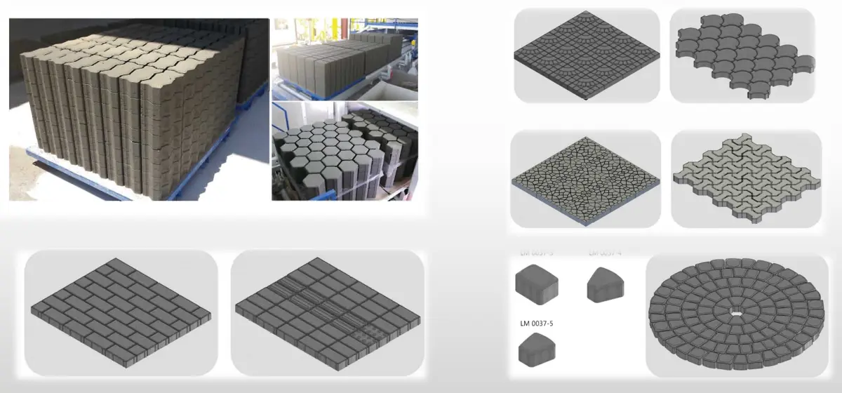 Blokų mašinos formos medžiaga turi didelę įtaką jos veikimui. Įprastos liejimo medžiagos yra plienas, plastikas ir guma. Plieninės formos turi atsparumo dilimui ir atsparumo korozijai pranašumus ir yra tinkamos ilgalaikio ir intensyvaus naudojimo aplinkoje; plastikinės formos yra lengvos ir pigios, tinkamos bendrai blokų gamybai; guminės formos dėl savo minkštumo ir atsparumo dilimui yra tinkamos specialių blokelių gamybai. Formos veikimas apima tarnavimo laiką, bloko formavimo efektą ir gamybos efektyvumą. Protingas medžiagų pasirinkimas ir konstrukcinis dizainas gali pagerinti formos tarnavimo laiką ir bloko formavimo kokybę. Tuo pačiu metu patogus veikimas ir greitas gamybos greitis taip pat gali pagerinti gamybos efektyvumą. Sienoms statyti naudojama blokinė forma bus suprojektuota taip, kad atitiktų architektūrinės mechanikos bei konstrukcijos formos ir dydžio reikalavimus. Pavyzdžiui, įprasta stačiakampė tuščiavidurių blokelių forma, jos skylių paskirstymas ir dydis atsižvelgs į sienos izoliaciją ir garso izoliaciją. Kelių klojimui naudojamos bordiūro blokelių formos bus suprojektuotos su konkrečios formos ir nuolydžio konstrukcija pagal kelio projektavimo reikalavimus, užtikrinančias bordiūrų drenavimo ir nukreipimo funkcijas.